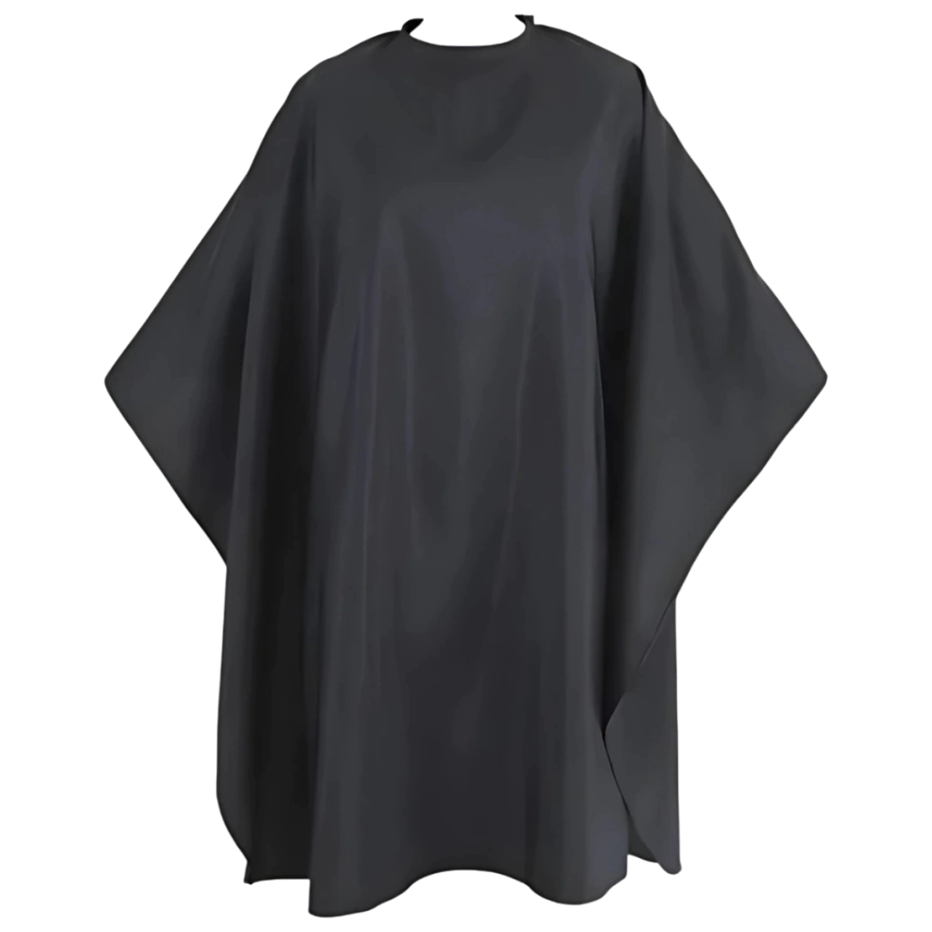 Fabricada en poliéster de alta calidad, esta capa es duradera y fácil de limpiar, lo que la hace perfecta para un uso prolongado en entornos profesionales. Su tipo de cierre de gancho garantiza un ajuste seguro y cómodo, permitiendo que el estilista se concentre en ofrecer la mejor experiencia a sus clientes sin distracciones.